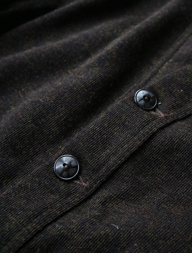 この手のカーディガンでは比較的地の厚いミックスウールで制作されている物になります。
