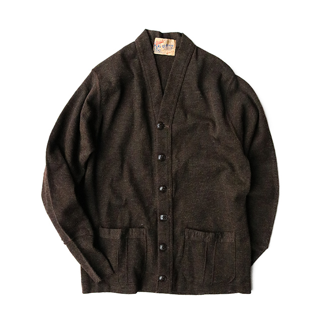 今回ご紹介のワークカーディガンは30年代から40年代頃の同ブランドタグが付くウール製のものです。