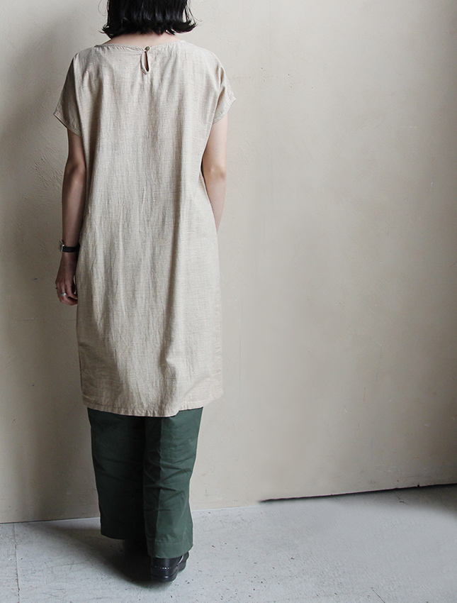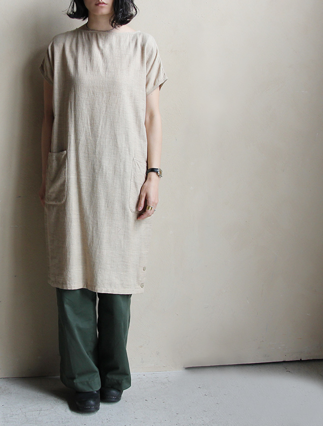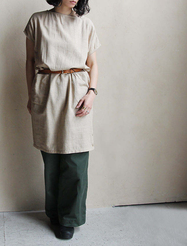 すらりとしたIラインなのでパンツを合わせたスタイルや、一枚でワンピースとしてもお楽しみいただけます。
