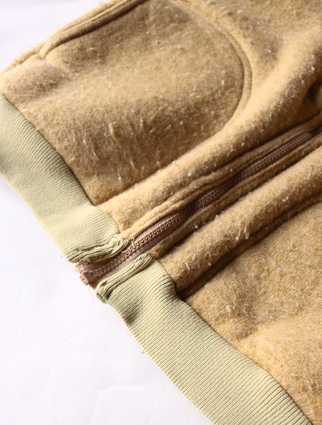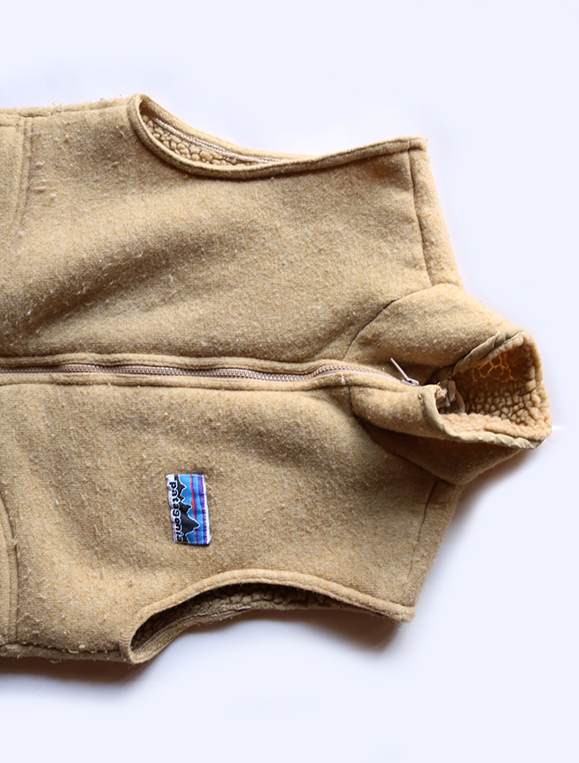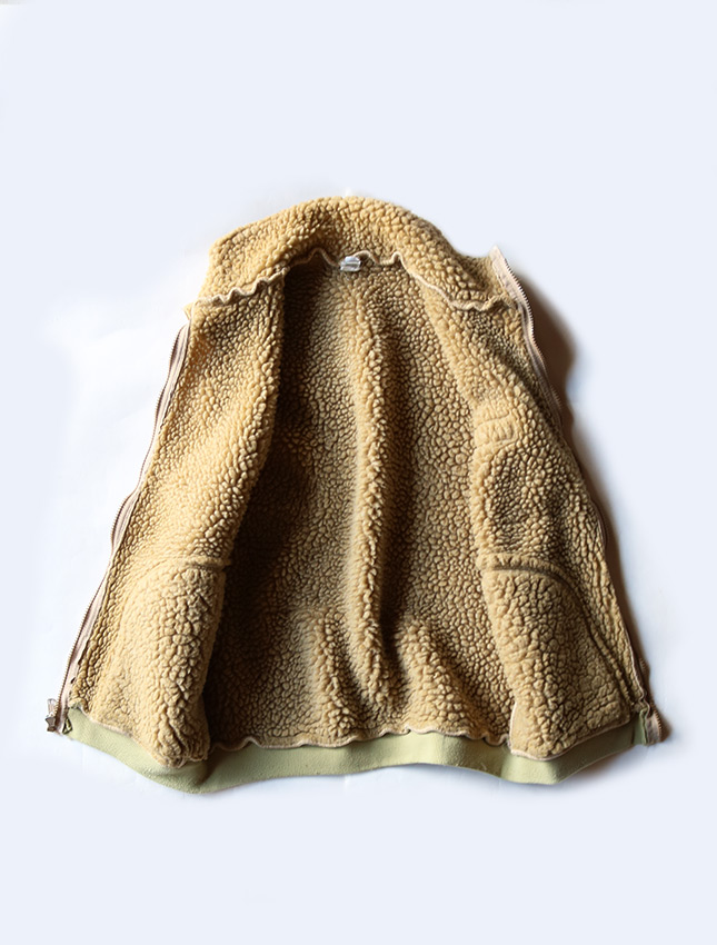 ナチュラルカラーに毛足の長い独特の風合いの生地はビンテージのパタゴニアの銘品の中でも格別の風合いがあります。ジッパーは鉄製の塗YKKジッパーが付きます。