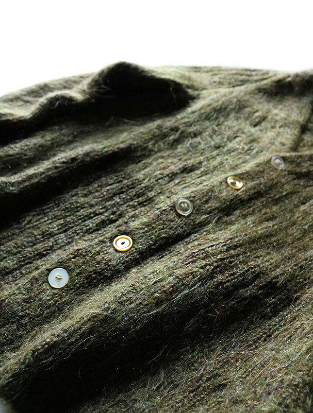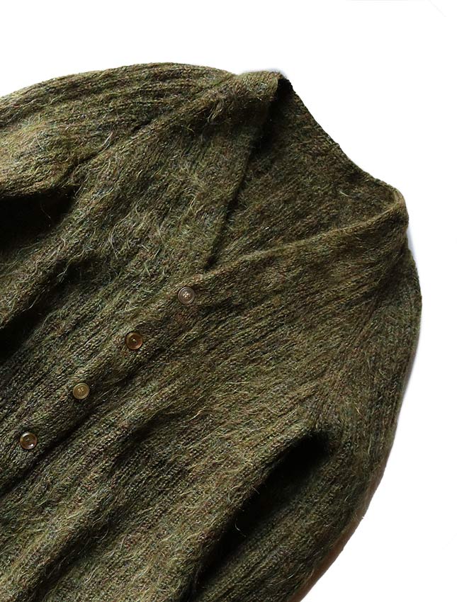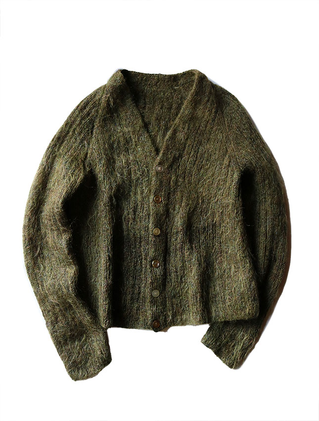 タグがございませんので詳しい年代やブランドは不明になりますが60年代から70年代頃と思われるモヘアカーディガンのご紹介です。