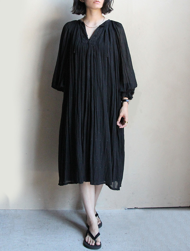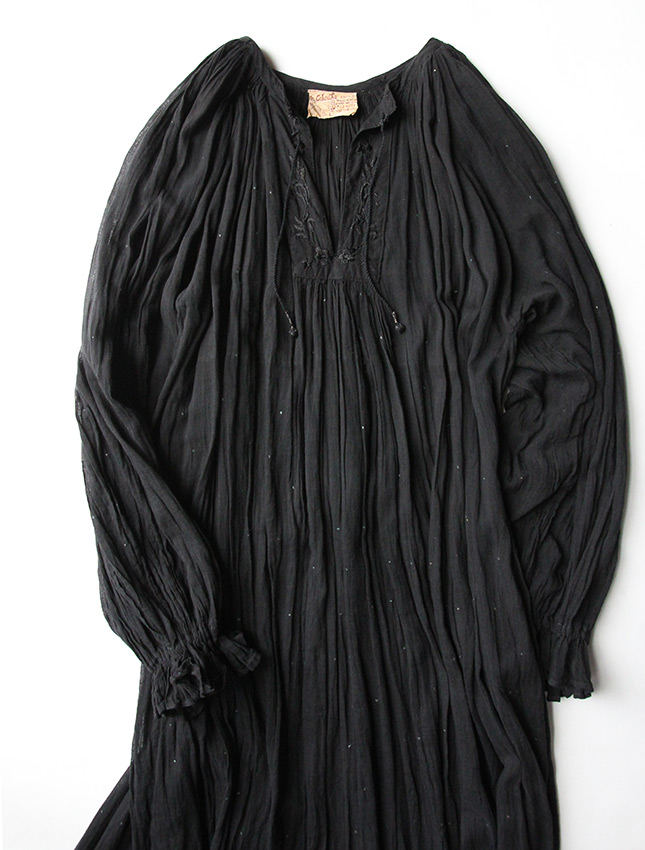こちらはインド綿では珍しい単色のブラックドレス。