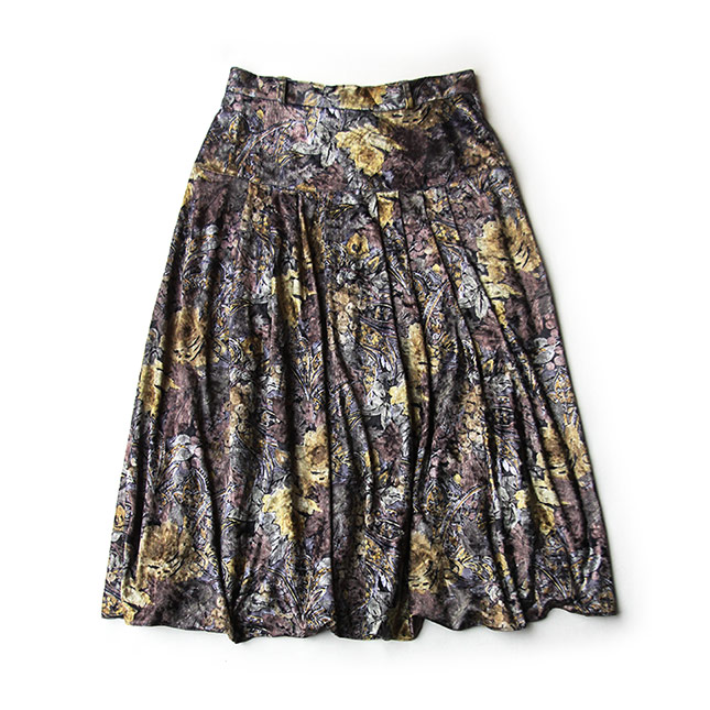 ヨーロッパ製のベロア素材特有の光沢感のあるフレアスカート。